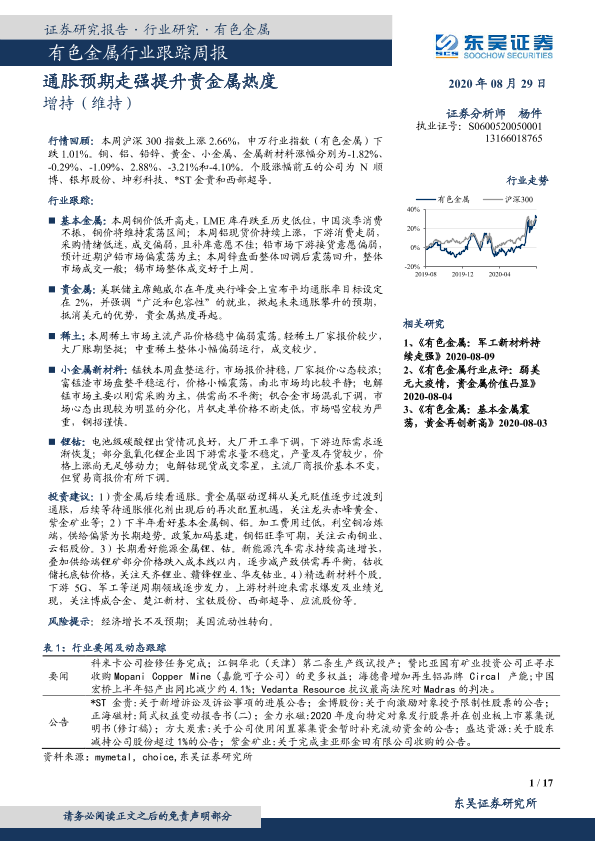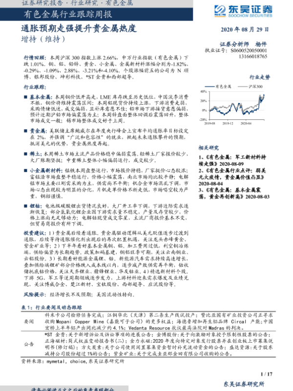 【东吴证券】【20200829】20200829-东吴证券-有色金属行业跟踪周报:通胀预期走强提升贵金属热度-17页