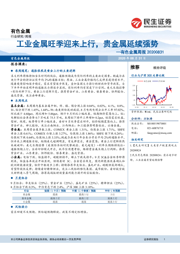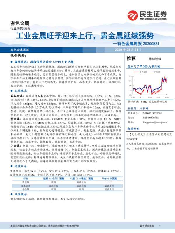 【民生证券】【20200831】20200831-民生证券-有色金属周报:工业金属旺季迎来上行,贵金属延续强势-18页