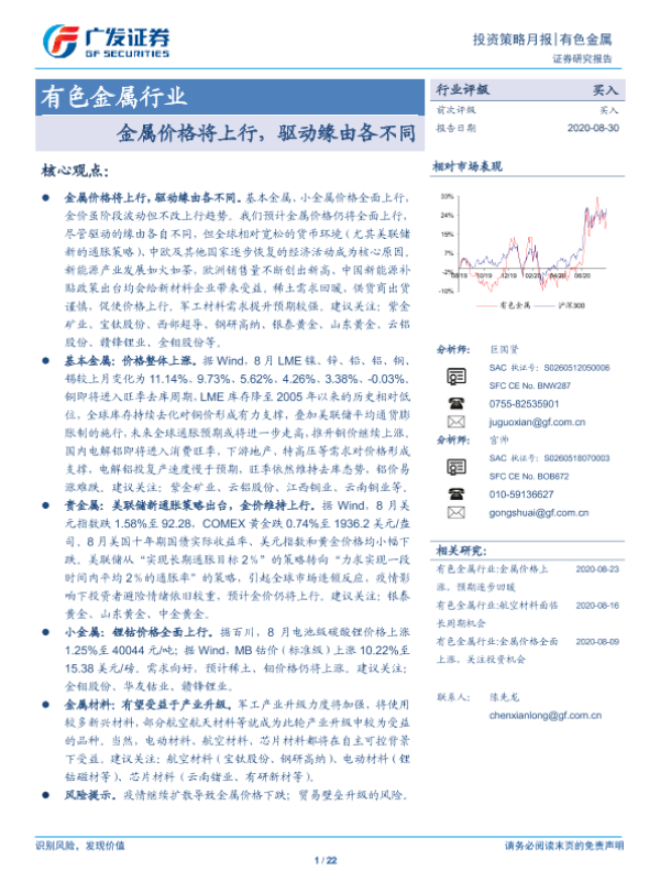 【广发证券】【20200830】20200830-广发证券-有色金属行业投资策略月报:金属价格将上行,驱动缘由各不同-22页