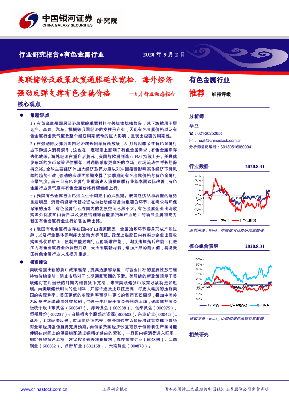 【银河证券】【20200902】20200902-中国银河-有色金属8月行业动态报告:美联储修改政策放宽通胀延长宽松,海外经济强劲反弹支撑有色金属价格-34页