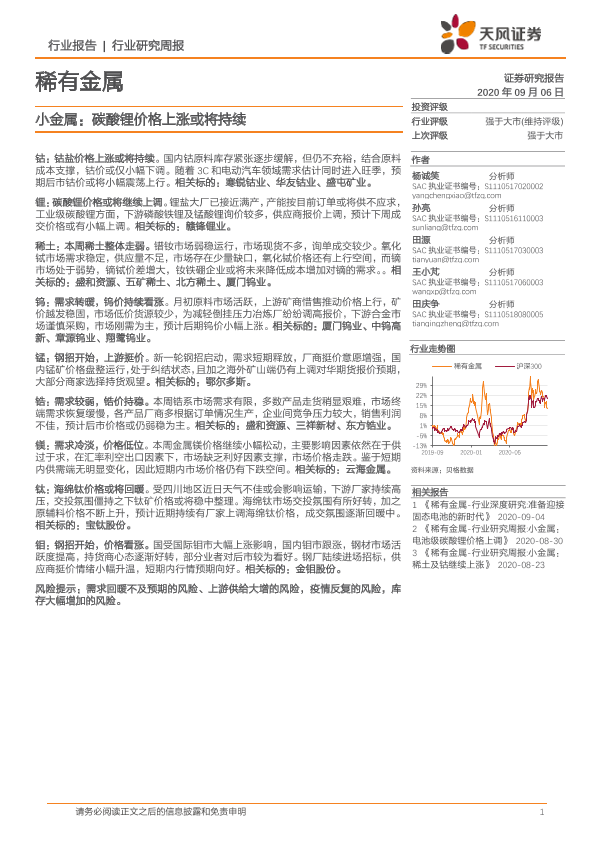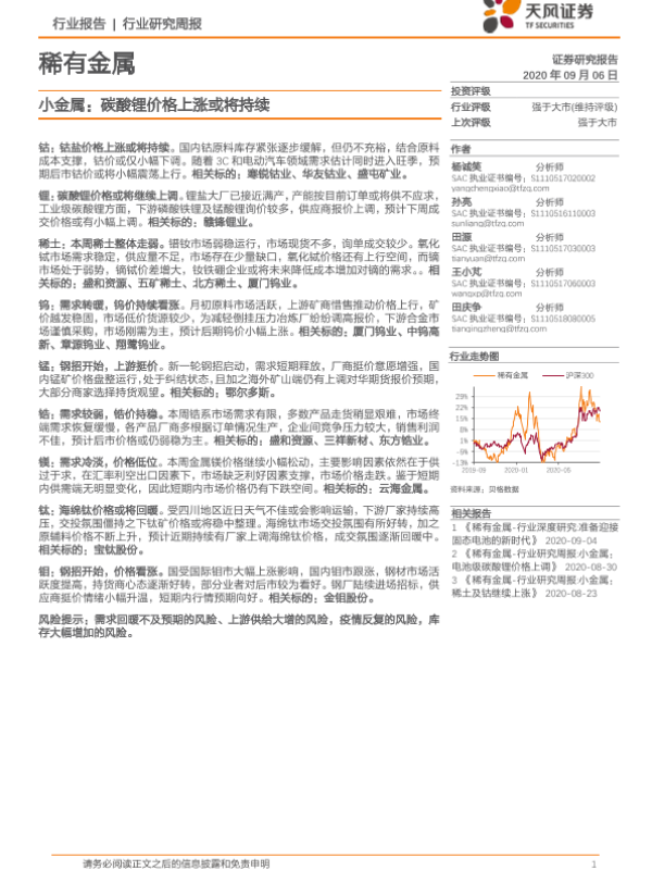 【天风证券】【20200906】20200906-天风证券-稀有金属行业研究周报:小金属:碳酸锂价格上涨或将持续-16页