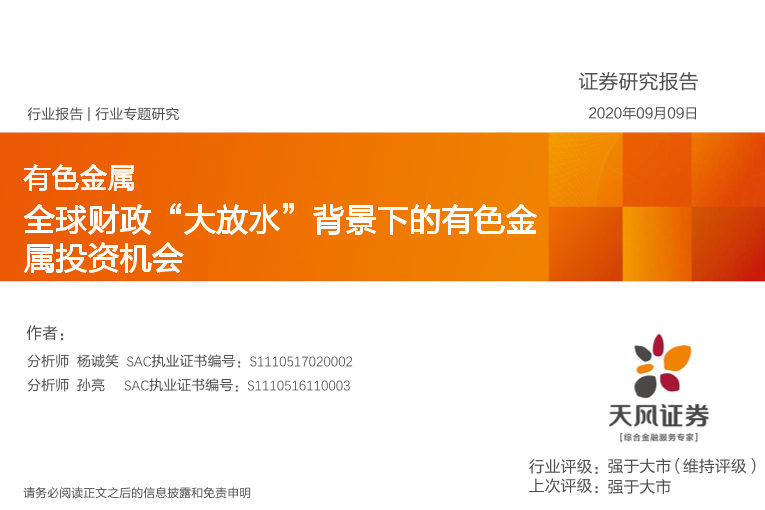 【天风证券】【20200909】全球财政“大放水”背景下的有色金属投资机会-41页