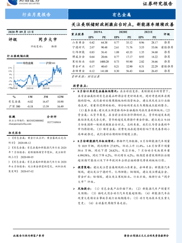 【财信证券】【20200913】20200913-财信证券-有色金属行业月度报告:关注美联储财政刺激出台时点,新能源车继续改善-14页