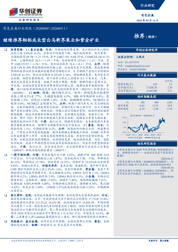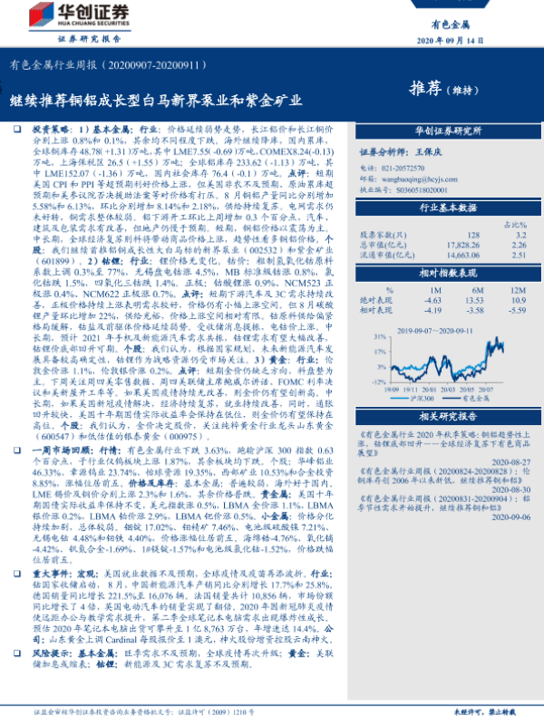 【华创证券】【20200914】20200914-华创证券-有色金属行业周报:继续推荐铜铝成长型白马新界泵业和紫金矿业-16页