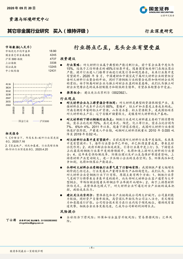 【国金证券】【20200920】其它非金属行业深度研究:行业拐点已至,龙头企业有望受益-17页