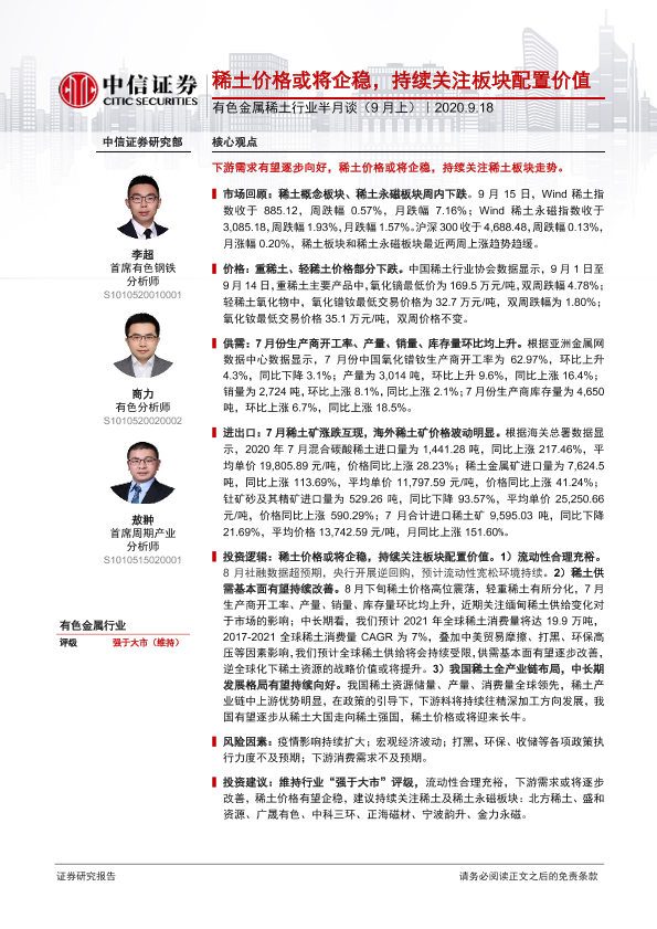 【中信证券】【20200918】有色金属稀土行业半月谈(9月上):稀土价格或将企稳,持续关注板块配置价值-34页