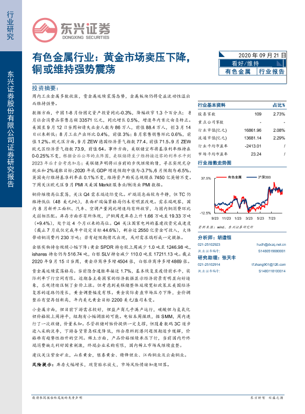 【东兴证券】【20200921】有色金属行业:黄金市场卖压下降,铜或维持强势震荡-15页