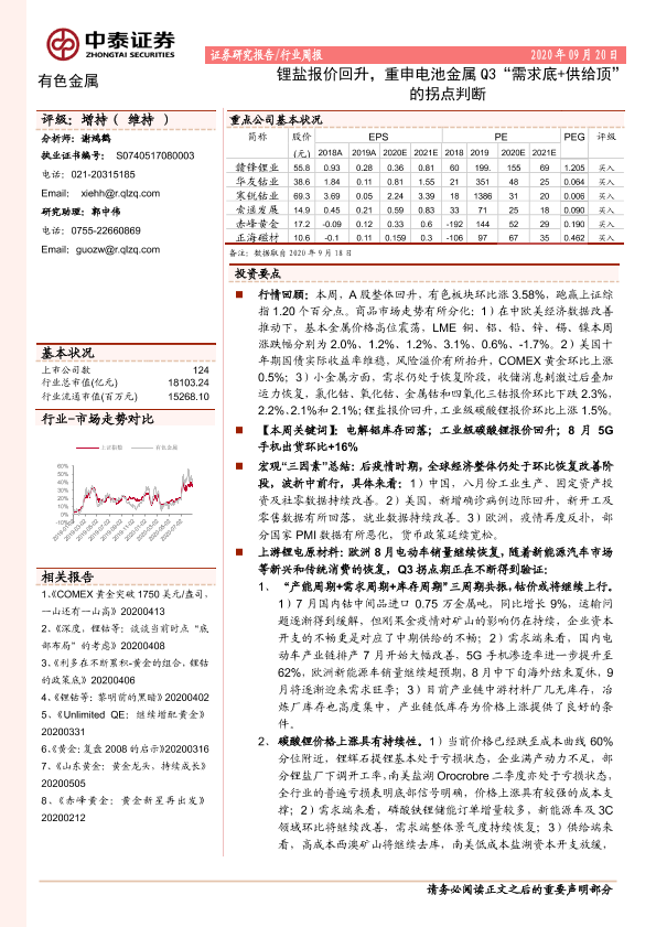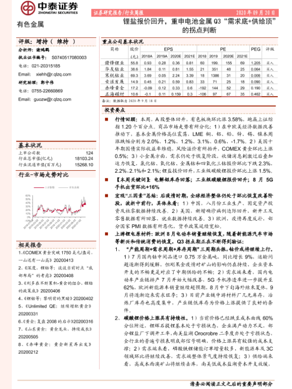 【中泰证券】【20200920】20200920-中泰证券-有色金属行业周报:锂盐报价回升,重申电池金属Q3“需求底+供给顶”的拐点判断-41页