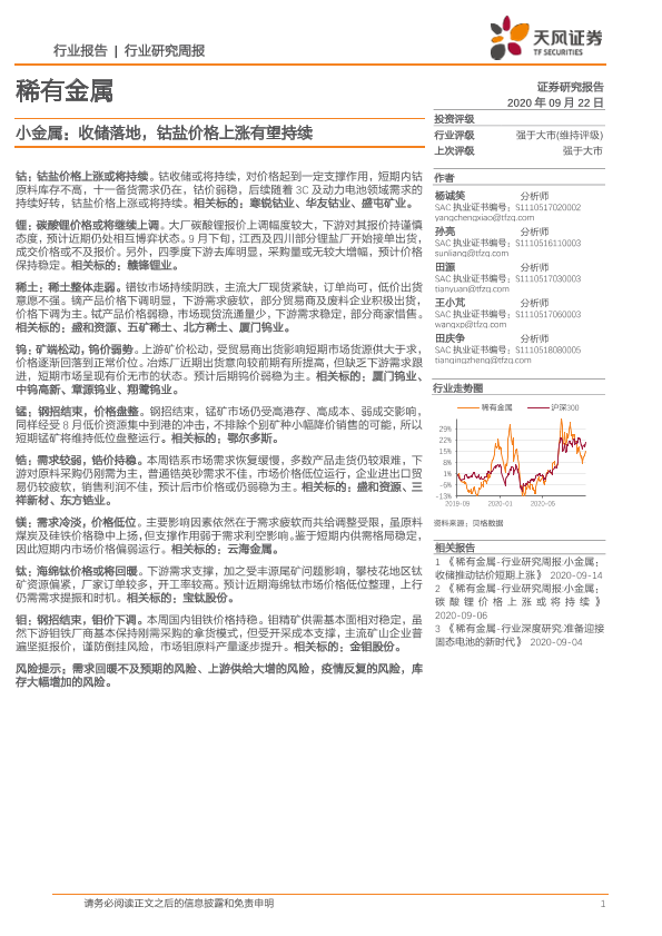 【天风证券】【20200922】小金属:收储落地,钴盐价格上涨有望持续-16页