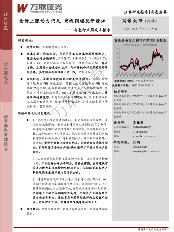 【万联证券】【20201009】20201009-万联证券-有色行业周观点报告:金价上涨动力仍足 重视铜铝及新能源-12页