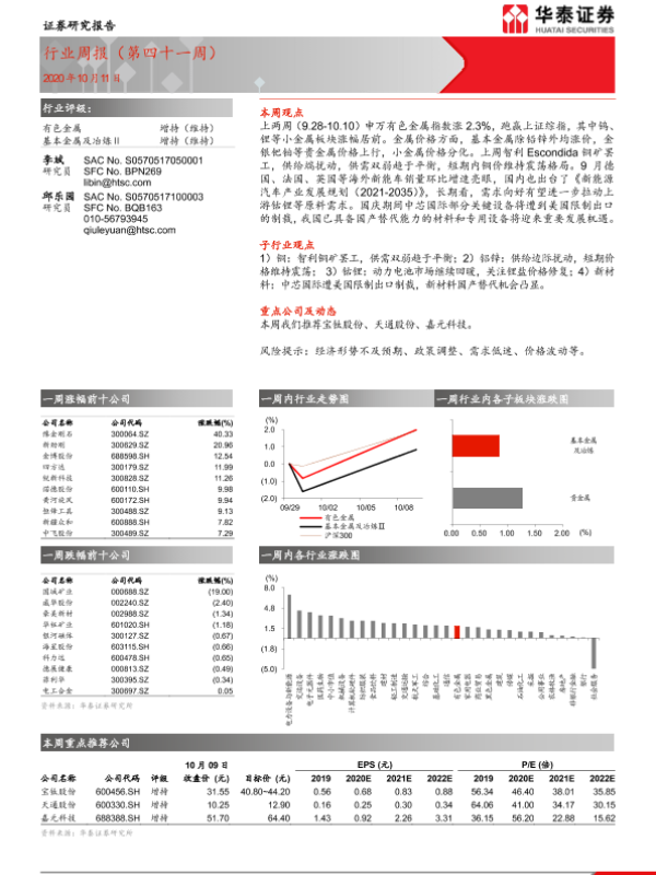【华泰证券】【20201011】20201011-华泰证券-有色金属行业周报(第四十一周)-14页