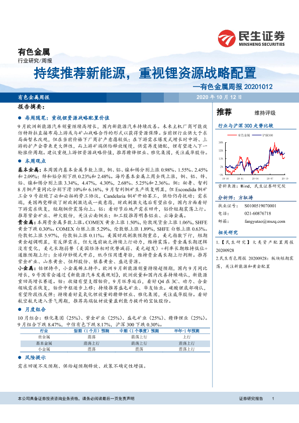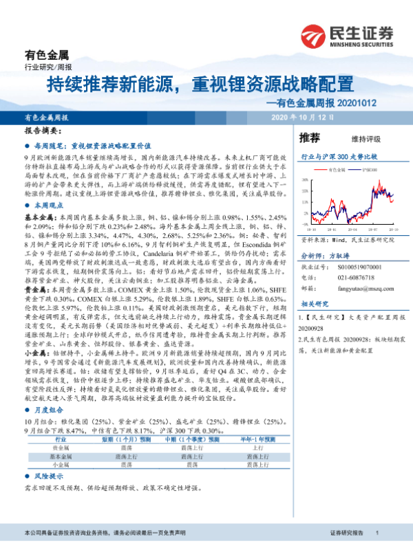 【民生证券】【20201012】20201012-民生证券-有色金属周报:持续推荐新能源,重视锂资源战略配置-18页