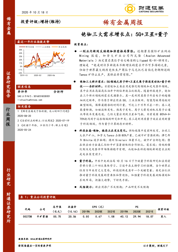 【财通证券】【20201018】稀有金属周报:铯铷三大需求增长点:5G+卫星+量子-7页