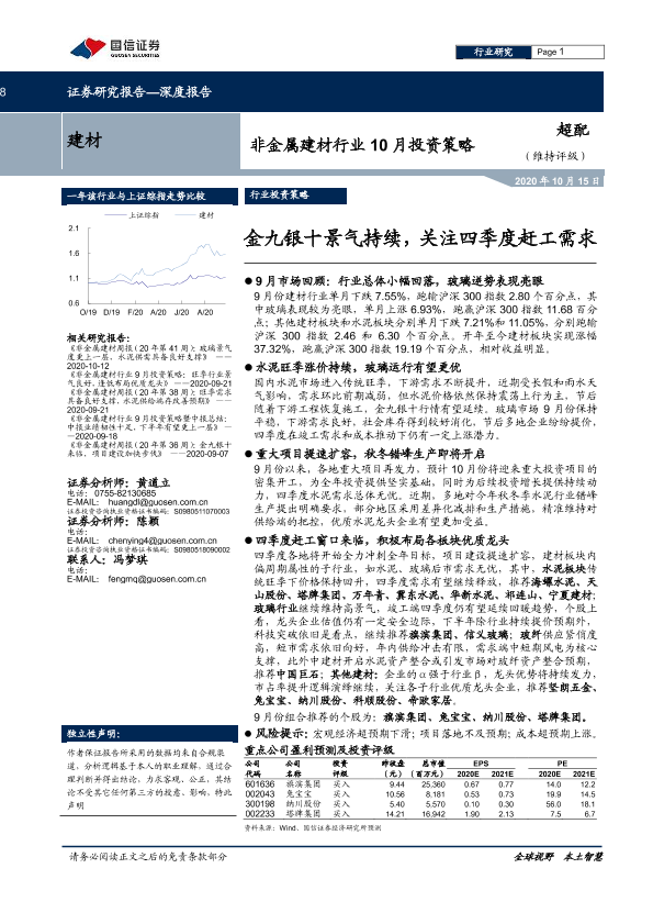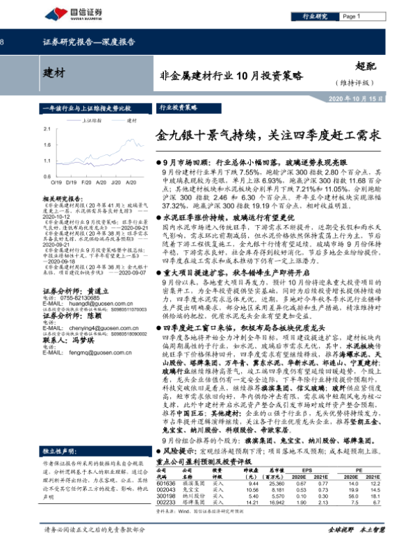 【国信证券】【20201015】非金属建材行业10月投资策略:金九银十景气持续,关注四季度赶工需求-25页