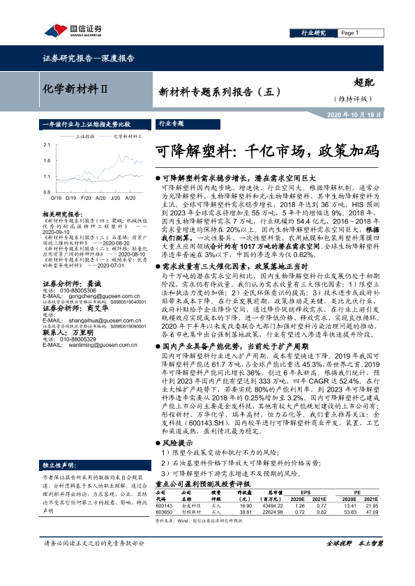 【国信证券】【20201019】化学新材料Ⅱ:新材料专题系列报告(五):可降解塑料:千亿市场,政策加码-24页