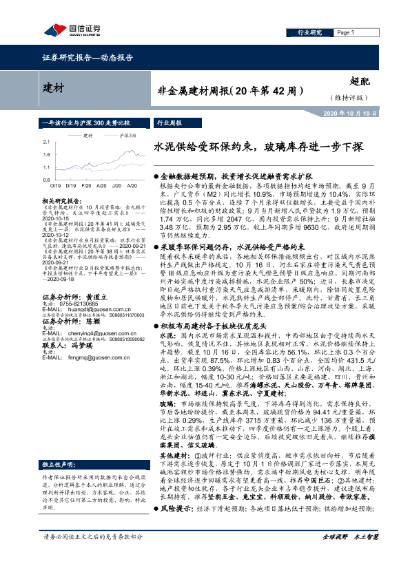 【国信证券】【20201019】非金属建材周报(20年第42周):水泥供给受环保约束,玻璃库存进一步下探-16页