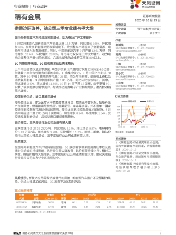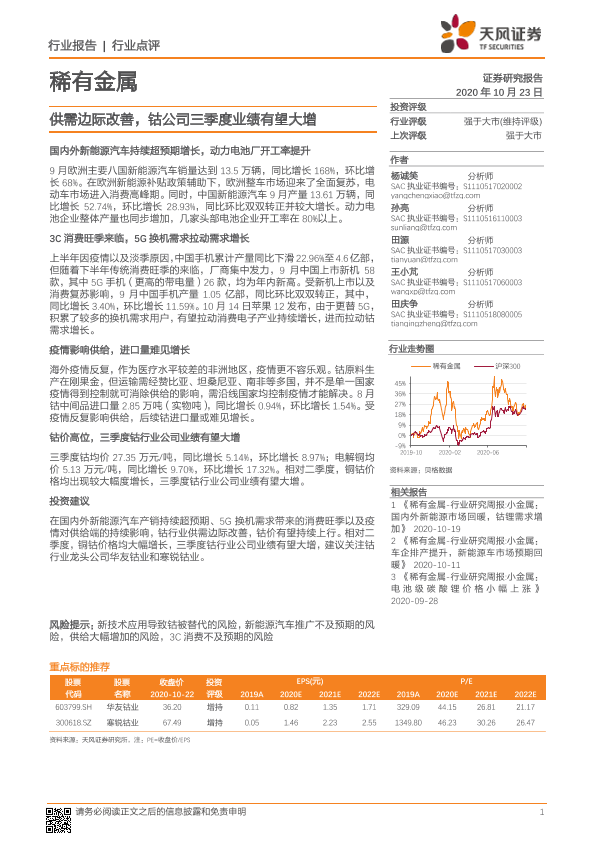 【天风证券】【20201023】稀有金属行业:供需边际改善,钴公司三季度业绩有望大增-2页