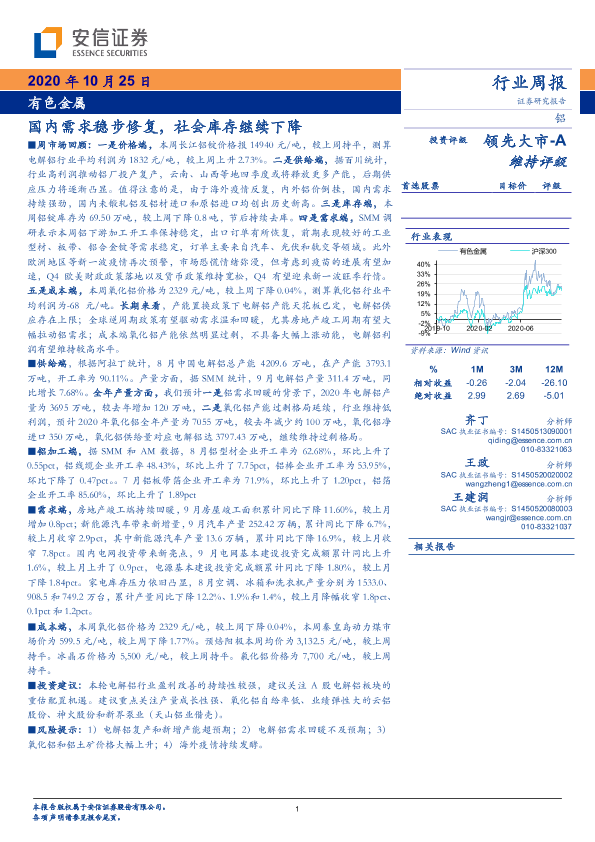 【安信证券】【20201025】20201025-安信证券-有色金属行业周报:国内需求稳步修复,社会库存继续下降-24页