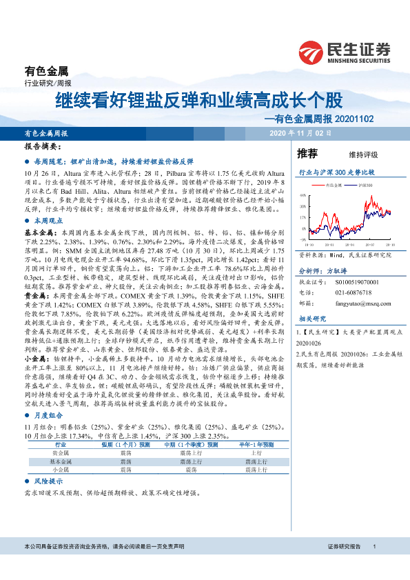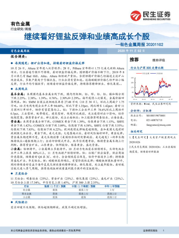 【民生证券】【20201102】20201101-民生证券-有色金属周报:继续看好锂盐反弹和业绩高成长个股-18页