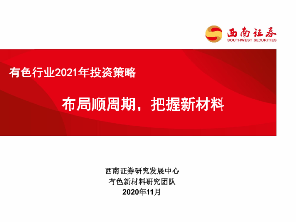 【西南证券】【202011】有色行业2021年投资策略:布局顺周期,把握新材料-45页
