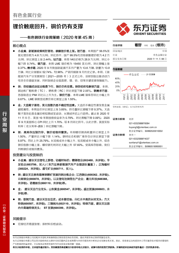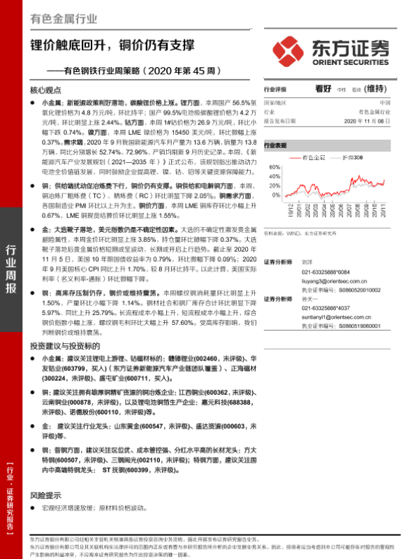 【东方证券】【20201108】20201108-东方证券-有色钢铁行业周策略(2020年第45周):锂价触底回升,铜价仍有支撑-27页