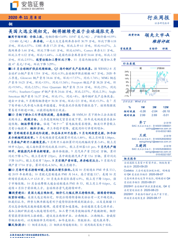 【安信证券】【20201108】20201108-安信证券-铜行业周报:美国大选尘埃初定,铜将继续受益于全球通胀交易-14页