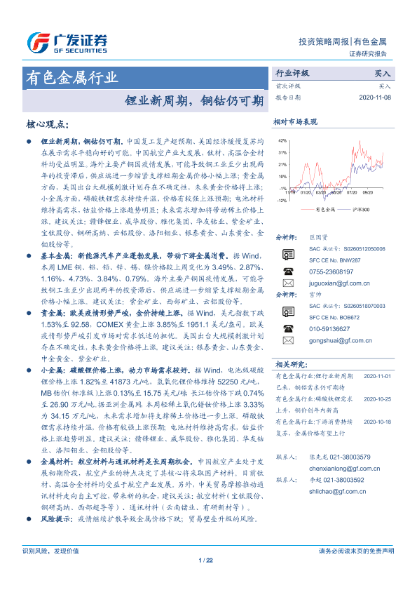 【广发证券】【20201108】20201108-广发证券-有色金属行业投资策略周报:锂业新周期,铜钴仍可期-22页