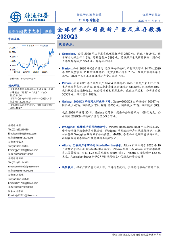 【海通证券】【20201111】全球锂业公司最新产量及库存数据2020Q3-4页