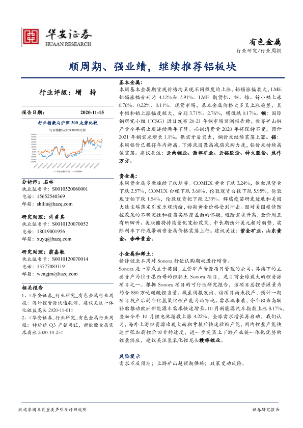 【华安证券】【20201115】20201115-华安证券-有色金属行业周报:顺周期、强业绩,继续推荐铝板块-12页