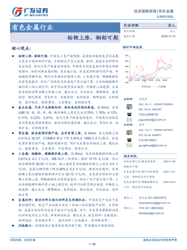 【广发证券】【20201115】有色金属行业:钴锂上涨,铜铝可期-22页