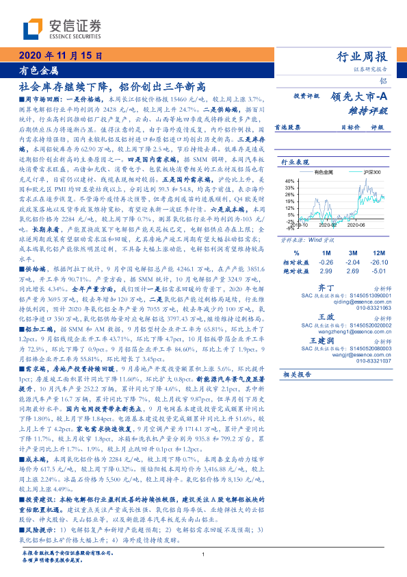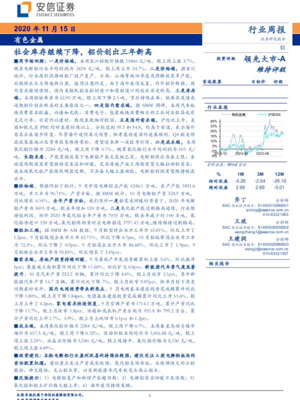 【安信证券】【20201115】20201115-安信证券-有色金属行业周报:社会库存继续下降,铝价创出三年新高-24页