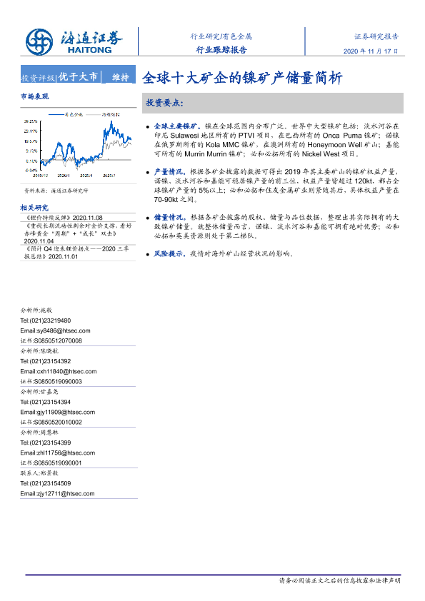 【海通证券】【20201117】20201117-海通证券-有色金属行业跟踪报告:全球十大矿企的镍矿产储量简析-3页
