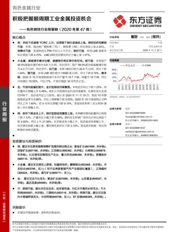 【东方证券】【20201122】20201122-东方证券-有色钢铁行业周策略(2020年第47周):积极把握顺周期工业金属投资机会-27页