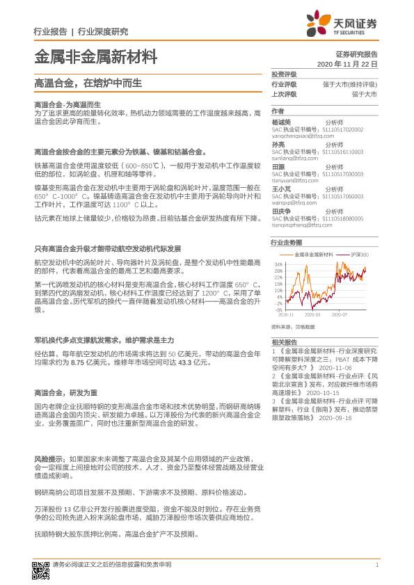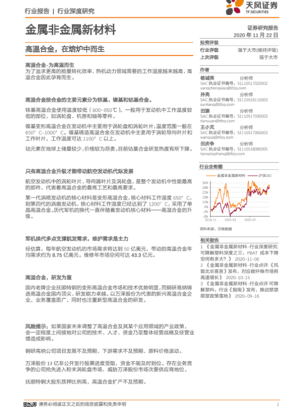 【天风证券】【20201122】金属非金属新材料行业深度研究:高温合金,在熔炉中而生-23页