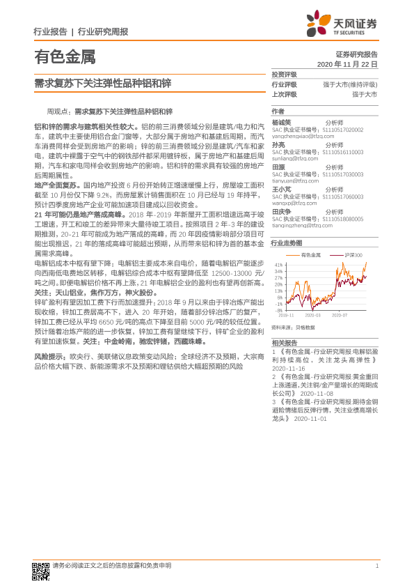 【天风证券】【20201122】20201122-天风证券-有色金属行业研究周报:需求复苏下关注弹性品种铝和锌-13页