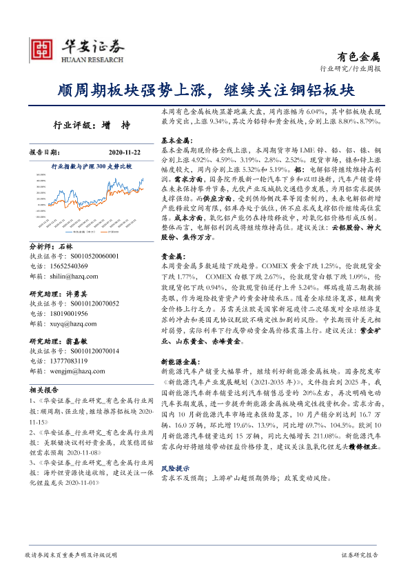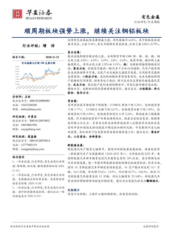 【华安证券】【20201122】20201122-华安证券-有色金属行业周报:顺周期板块强势上涨,继续关注铜铝板块-12页