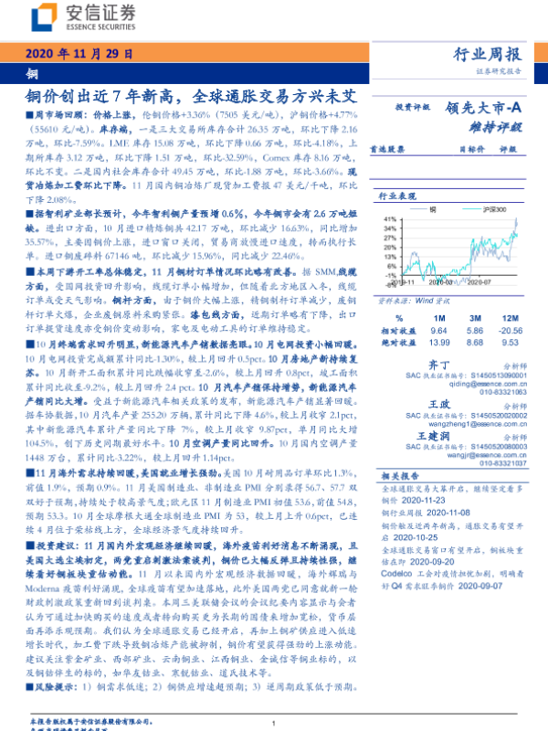 【安信证券】【20201129】20201129-安信证券-铜行业周报:铜价创出近7年新高,全球通胀交易方兴未艾-15页