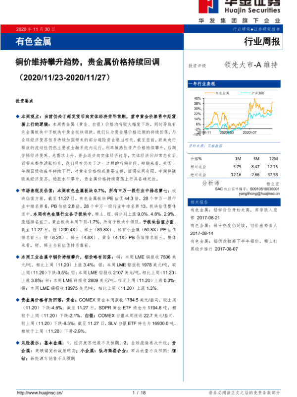 【华金证券】【20201130】20201130-华金证券-有色金属行业周报:铜价维持攀升趋势,贵金属价格持续回调-18页