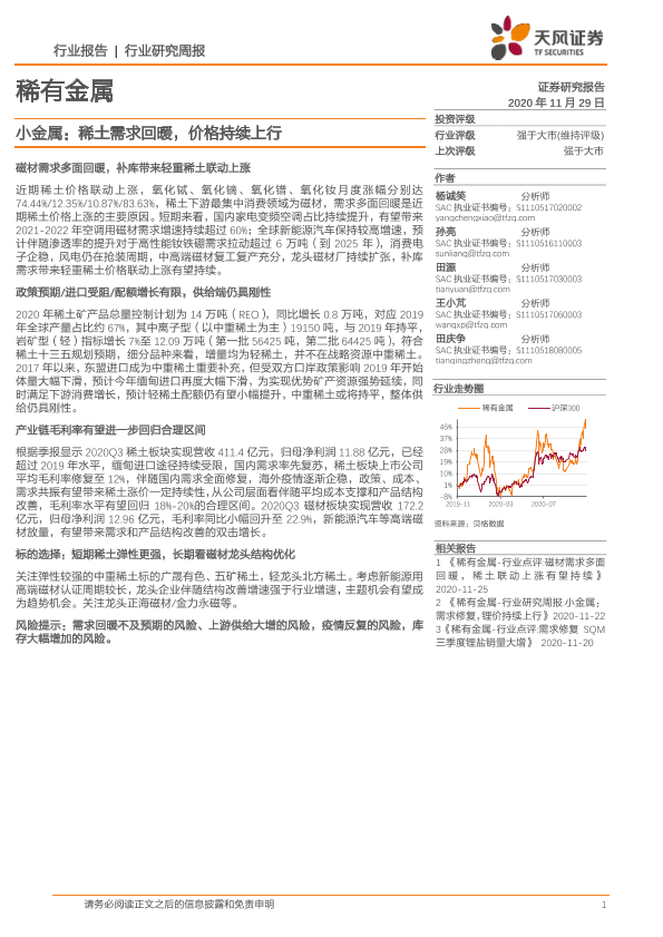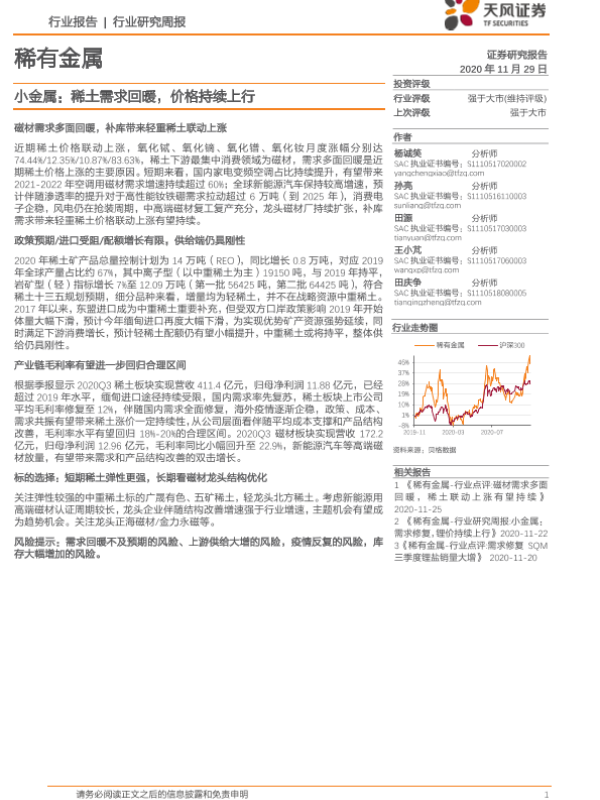 【天风证券】【20201129】20201129-天风证券-稀有金属-小金属:稀土需求回暖,价格持续上行-16页