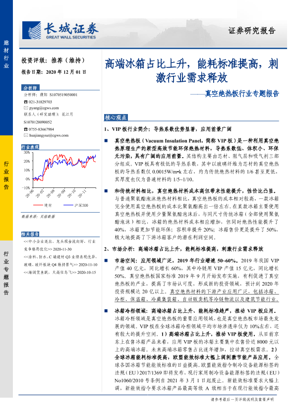 【长城证券】【20201201】20201201-长城证券-真空绝热板行业专题报告:高端冰箱占比上升,能耗标准提高,刺激行业需求释放-25页