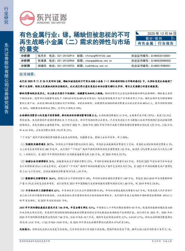 【东兴证券】【20201204】有色金属行业:锑,稀缺但被忽视的不可再生战略小金属(二)需求的弹性与市场的量变-22页