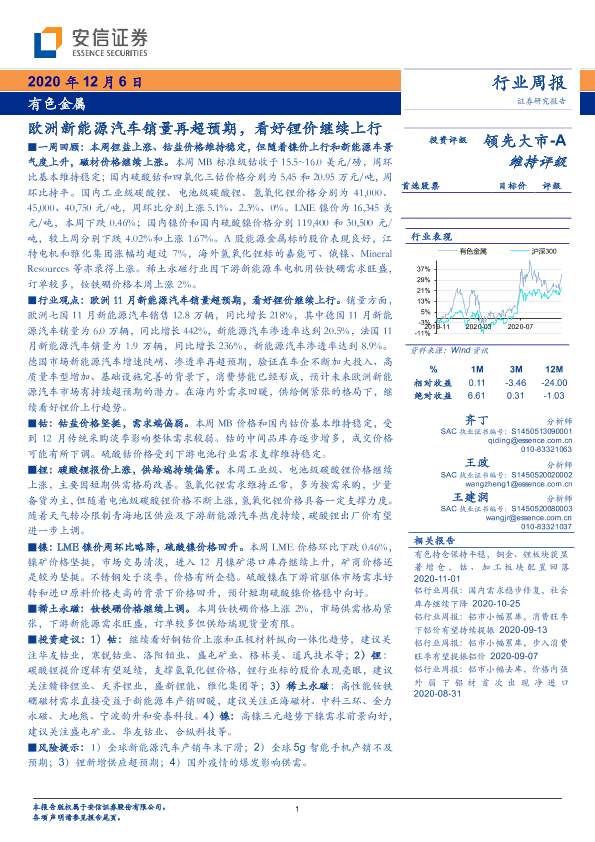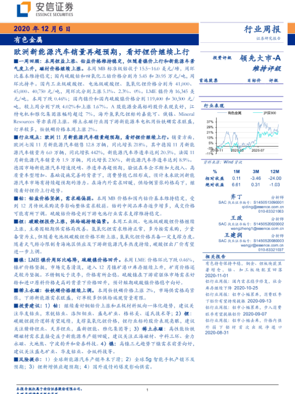【安信证券】【20201206】20201206-安信证券-有色金属行业周报:欧洲新能源汽车销量再超预期,看好锂价继续上行-26页