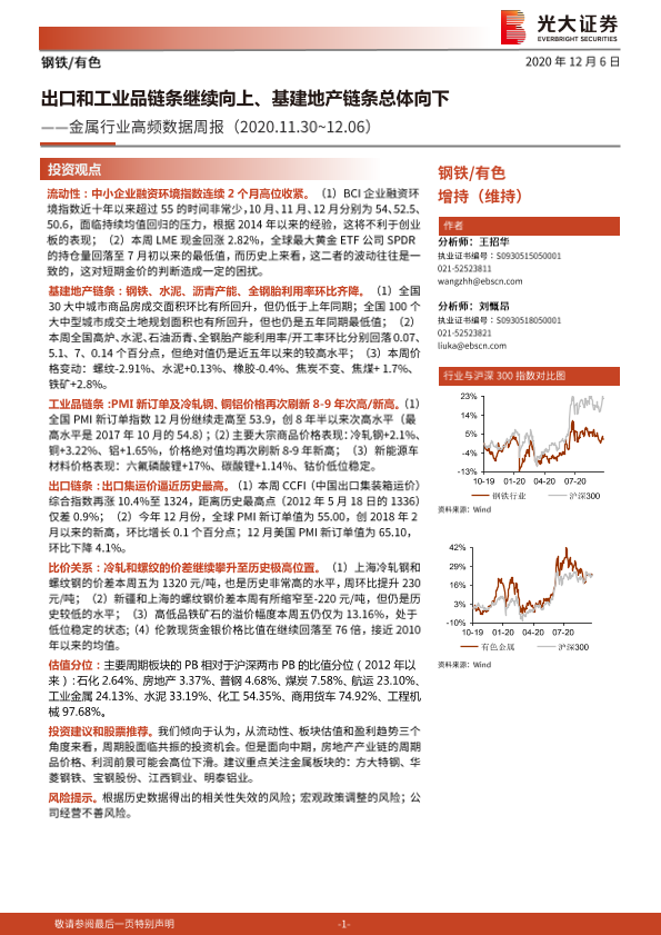 【光大证券】【20201206】金属行业高频数据周报:出口和工业品链条继续向上、基建地产链条总体向下-16页