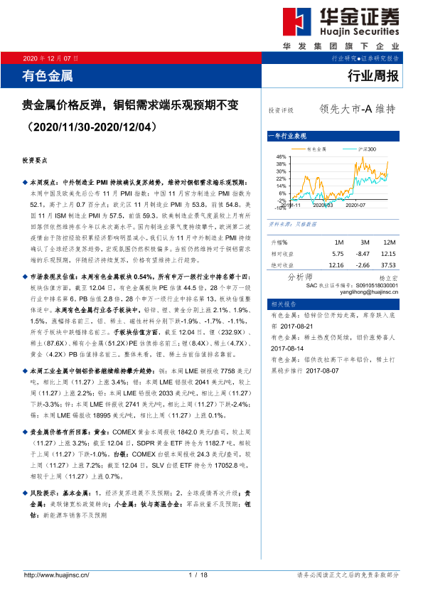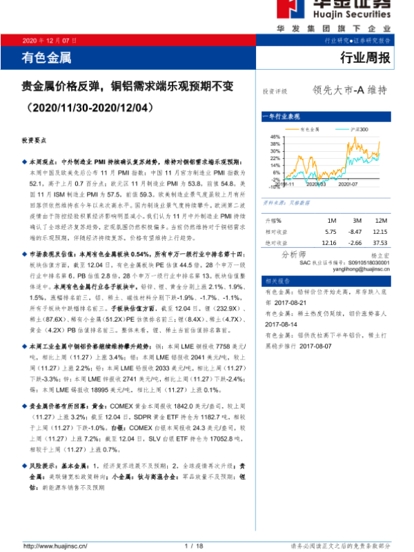 【华金证券】【20201207】20201207-华金证券-有色金属行业周报:贵金属价格反弹,铜铝需求端乐观预期不变-18页