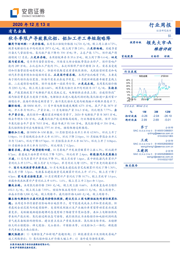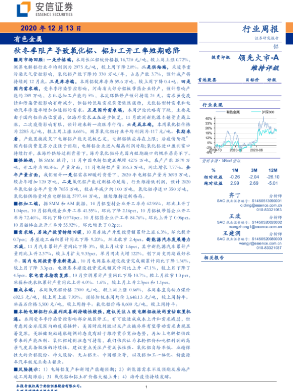 【安信证券】【20201213】20201213-安信证券-有色金属行业周报:秋冬季限产导致氧化铝、铝加工开工率短期略降-24页