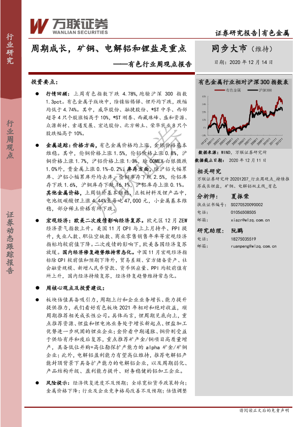 【万联证券】【20201214】20201214-万联证券-有色行业周观点报告:周期成长,矿铜、电解铝和锂盐是重点-11页
