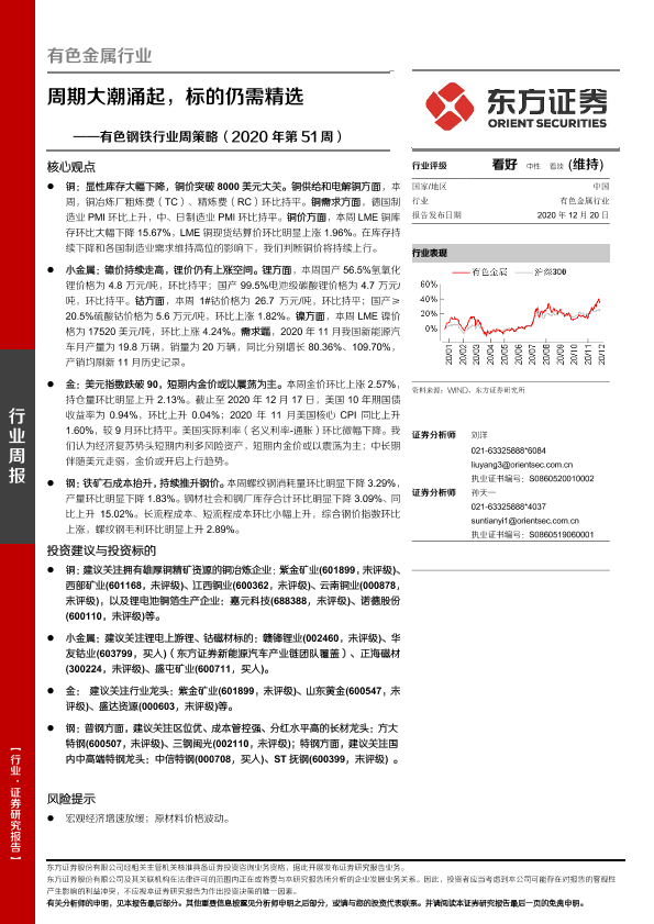 【东方证券】【20201220】20201220-东方证券-有色钢铁行业周策略(2020年第51周):周期大潮涌起,标的仍需精选-28页