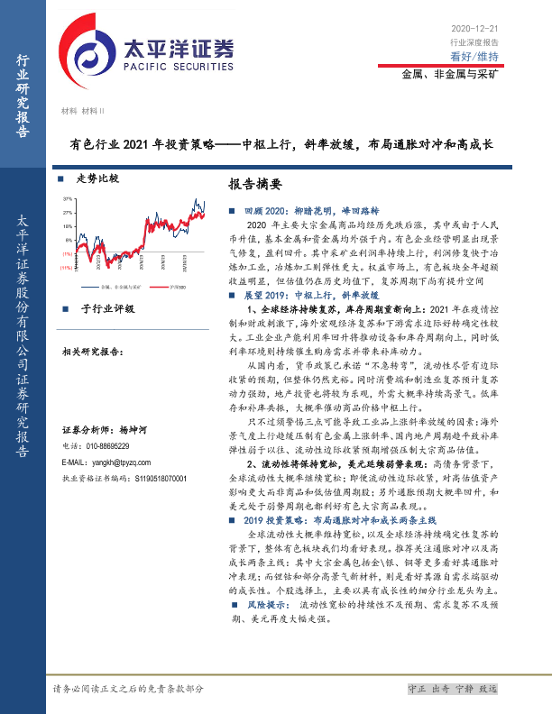 【太平洋证券】【20201221】有色行业2021年投资策略:中枢上行,斜率放缓,布局通胀对冲和高成长-29页