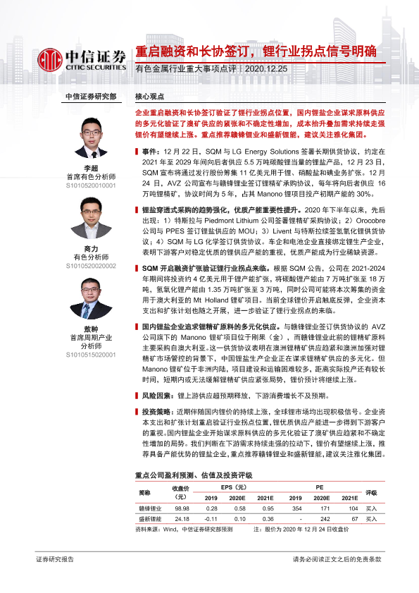 【中信证券】【20201225】20201225-中信证券-有色金属行业重大事项点评:重启融资和长协签订,锂行业拐点信号明确-3页