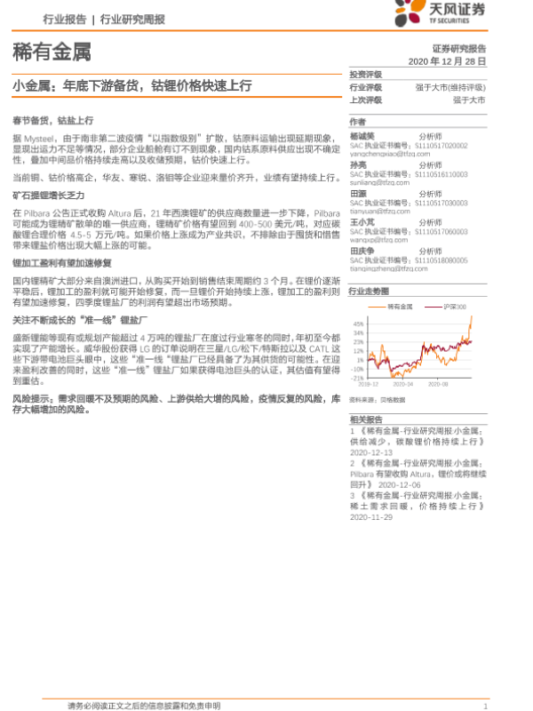 【天风证券】【20201228】20201228-天风证券-稀有金属行业研究周报:小金属:年底下游备货,钴锂价格快速上行-16页